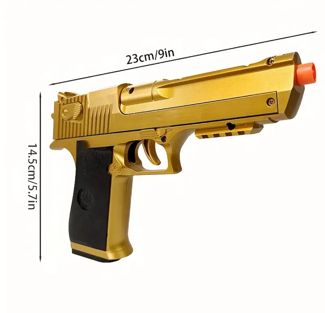 Não é necessário carregar manualmente, este pistola semi-automático mecânico que ejetar cápsulas é perfeito para esportes de combate ao ar livre e faz um ótimo presente para o Halloween e o Natal (inclui 1 revista, 6 cápsulas e 30 balas).